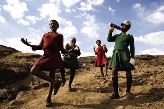 Jovens estudantes regressam a casa depois de mais um dia de aulas numa aldeia das montanhas do Lesoto