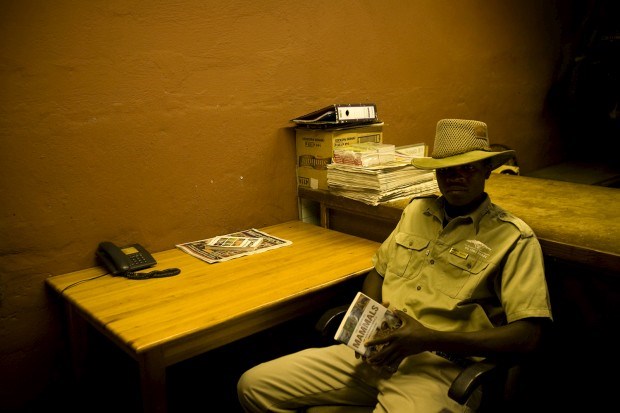 Um ranger descansa no seu gabinete no parque Mlilwane na Suazilândia