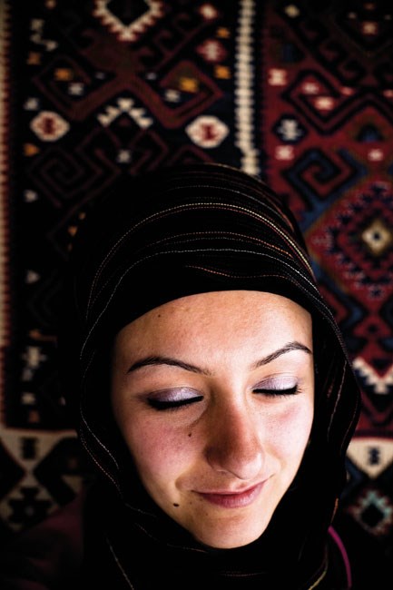 Uma rapariga curda fotografada numa fábrica de tapetes junto ao lago Van no Curdistão turco