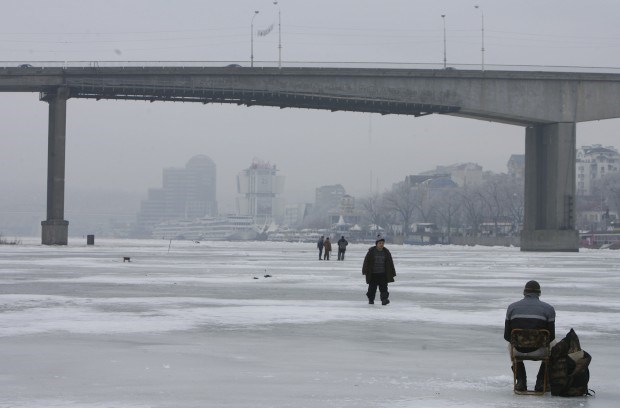 RÚSSIA, 3.1.2013. Pescadores em buracos no gelo no rio Don da cidade de Rostov Vladimir Konstantinov/Reuters