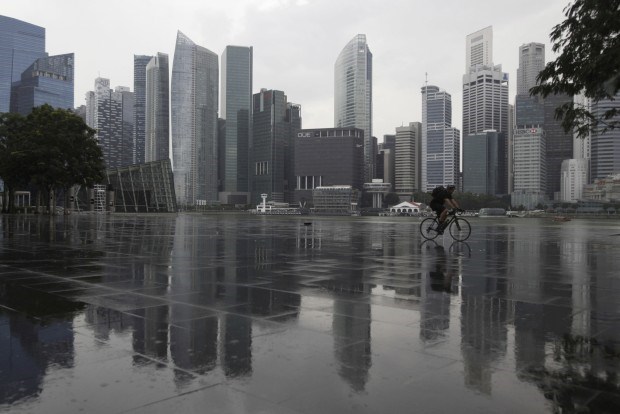 SINGAPURA, 3.1.2013. Um ciclista por entre o real e o reflexo no centro de negócios de Singapura Edgar Su/Reuters