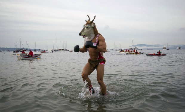 CANADÁ, 1.1.2013. Um participante do Mergulho do Urso Polar, tradição do dia de ano novo. Em Vancouver Ben Nelms/Reuters