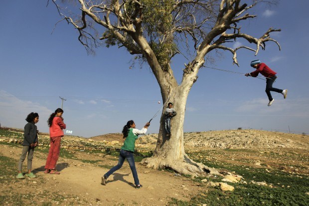 CISJORDÂNIA, 2.1.2013. Raparigas a brincar perto de Jenin no início do ano Ammar Awad/Reuters