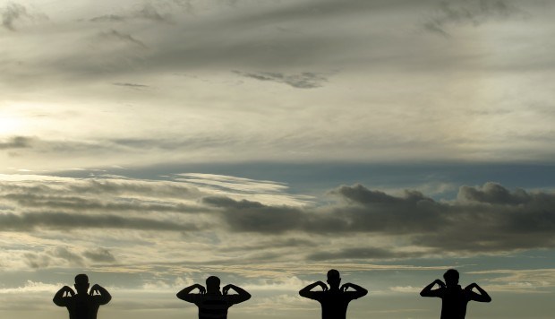 SRI LANKA, 9.1.2013. Em exercícios em Colombo ao pôr-do-sol Dinuka Liyanawatte/Reuters