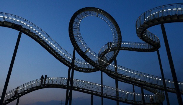 ALEMANHA, 13.01.2013. A escultura Tigre & Tartaruga - Montanha Mágica na sua óbvia inspiração numa montanha-russa em Duisburg-Wanheim: o "passeio" tem 220m incluindo 249 degraus. Uma criação de Heike Mutter e Ulrich Genth Patrick Stollarz/AFP