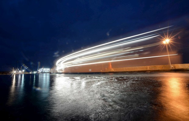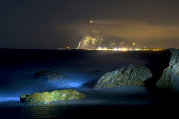 GIBRALTAR, 18.08.2013. Uma longa exposição captada a partir da praia de Levante na La Linea de la Concepción mostra o rochedo que está no centro da disputa Reino Unido - Espanha Marcos Moreno/AFP