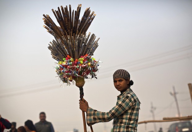 ÍNDIA, 15.01.2013. Um vendedor de flautas junto ao Ganges, em Allahabad Ahmad Masood/Reuters