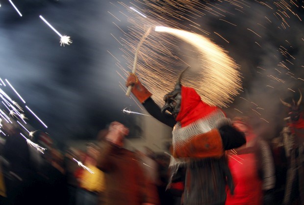 ESPANHA, 21.01.2013. Um "diabo" nos tradicionais Correfoc (corrida de fogo) em Palma de Maiorca Enrique Calvo/Reuters