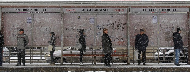ROMÉNIA, 28.01.2013. A aguardar o transporte durante uma tempestade de neve em Bucareste Bogdan Cristel/Reuters