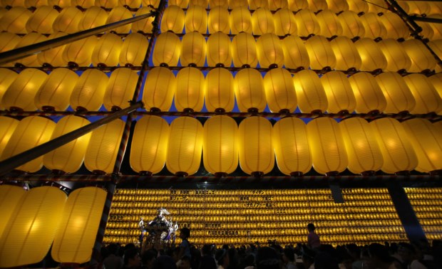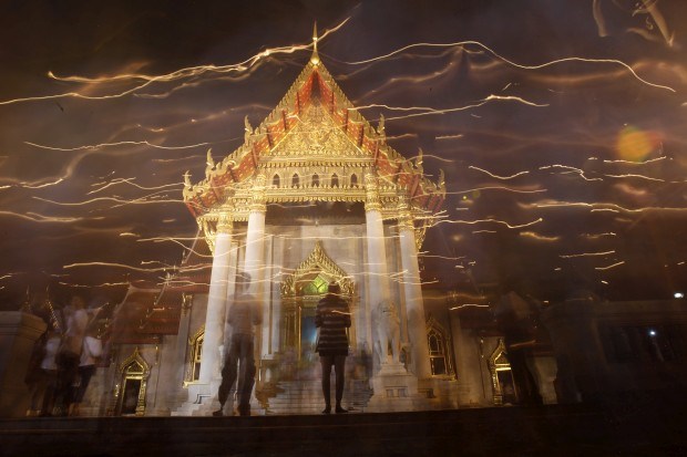 TAILÂNDIA; 25.02.2013. Budistas em procissão de velas em redor do Wat Benjamabophit, o Templo de Mármore, no Dia Makha Bucha (que homenageia Buda e os seus ensinamentos) Cheryl Ravelo/Reuters