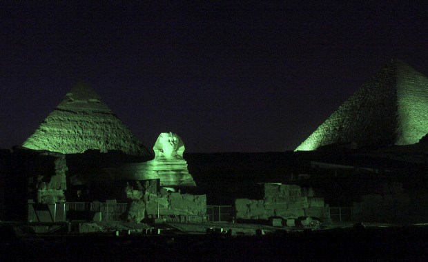 EGIPTO, 14.03.2013. Pirâmides e Esfinge em verde: tudo por causa de um plano de marketing do Turismo da Irlanda para promover St. Patrick’s Day (o dia de São Patrício em português, o dia nacional da Irlanda) Asmaa Waguih/Reuters