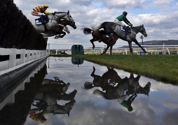 REINO UNIDO, 14.03.2013. Um momento durante a corrida Novices' Steeple Chase no Cheltenham Festival, em Gloucestershire Stefan Wermuth/Reuters