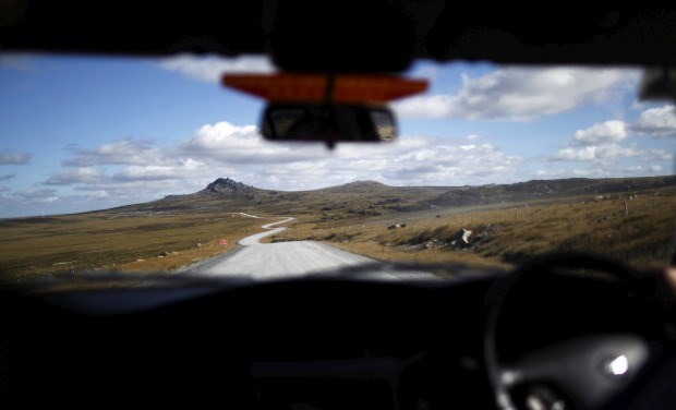 MALVINAS, 16.03.2013. A estrada para Mount Pleasant vista de um veículo perto de Stanley Marcos Brindicci / Reuters