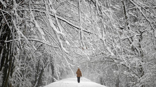 POLÓNIA, 1.4.2013. A caminhar pelo parque Mlociny depois de um nevão. Em Varsóvia Peter Andrews/Reuters