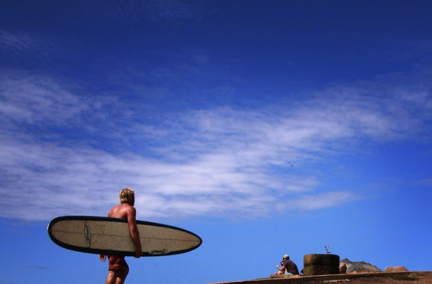 AUSTRÁLIA, 2.4.2013. Um surfista caminha pela Long Reef Beach num dia quente de Sydney David Gray/Reuters