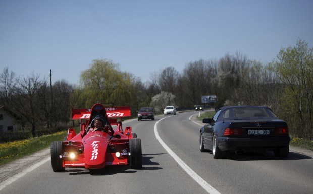 BÓSNIA HERZEGOVINA, 16.04.2013. Miso Kuzmanovic guia o seu carro de Fórmula 1, feito pelo próprio. Levou dois anos e custou-lhe 25 mil euros. Tem motor Porsche. Dado Ruvic/Reuters