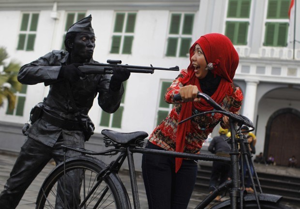 INDONÉSIA 11.04.2013. Um artista de rua muito realista. No parque do museu Fatahilah em Jacarta Beawiharta/Reuters