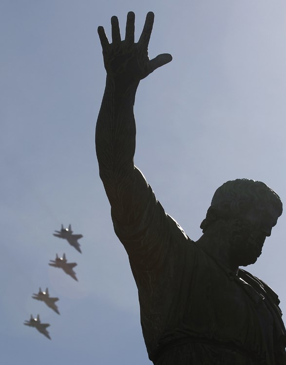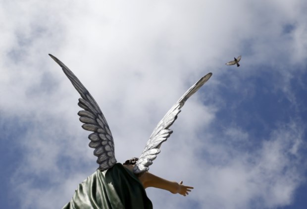 MALTA, 14.08.2013. Um pombo voa sobre a estátua de um anjo em Mgarr Darrin Zammit Lupi/Reuters