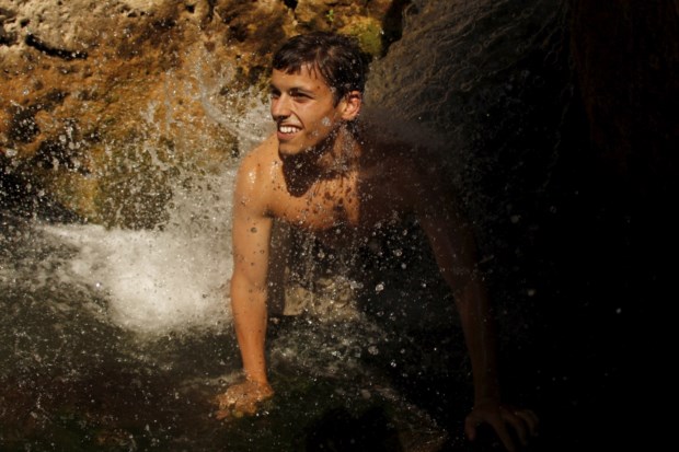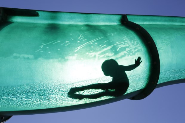 SUÍÇA, 1.8.2013. Um rapaz num escorrega aquático num complexo de piscinas públicas em Thun Ruben Sprich/Reuters