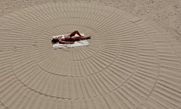 FRANÇA, 31.7.2013. Uma turista australiana aproveita o sol numa praia da Croisette em Cannes Eric Gaillard/Reuters