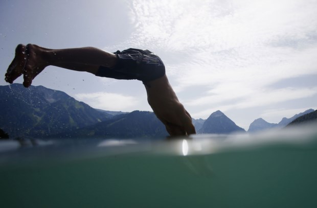 ÁUSTRIA, 3.8.2013. Um salto para as águas do lago Achensee, perto de Maurach Dominic Ebenbichler/Reuters