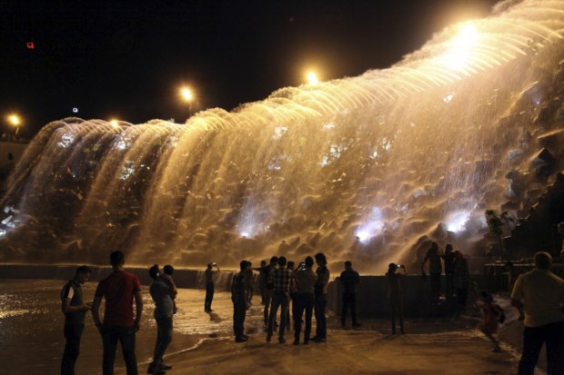 IRAQUE, 9.08.2013. Visitantes fotografam um fonte luminosa num parque de atracções na província de Sulaimaniya, a 330km de Bagdad. O parque Chavy Land é parte de um ambicioso projecto da região para atrair mais turismo Yahya Ahmad/Reuters
