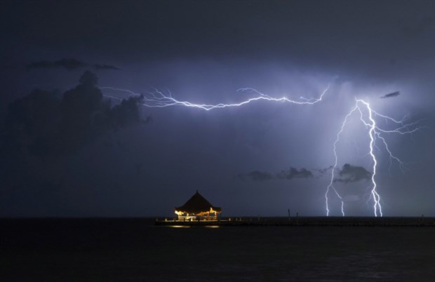 MÉXICO, 13.08.2013. Relâmpagos sobre o mar, perto da meca turística de Cancún Ruiz García/Reuters