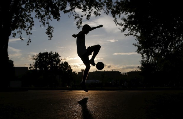 RÚSSIA, 14.08.2013. A jogar à bola enquanto o sol desce sobre o parque Gorky em Moscovo Phil Noble/Reuters