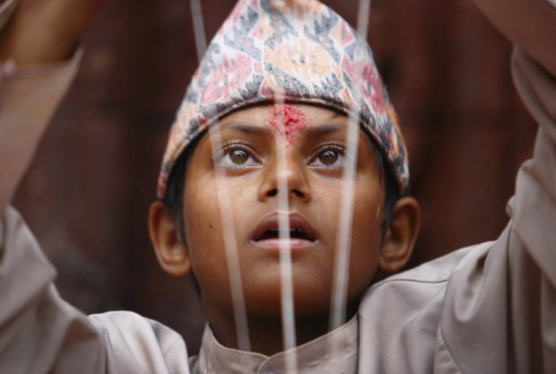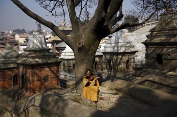 NEPAL, 12.12.2013. Um "sadhu", homem "santo" do hinduísmo, toca uma flauta no templo Pashupatinath em Katmandu Navesh Chitrakar