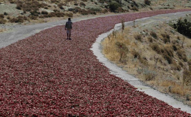 TURQUIA, 12.09.2013. Uma estrada de pimentas a secar ao sol, em Kilis Umit Bektas/Reuters