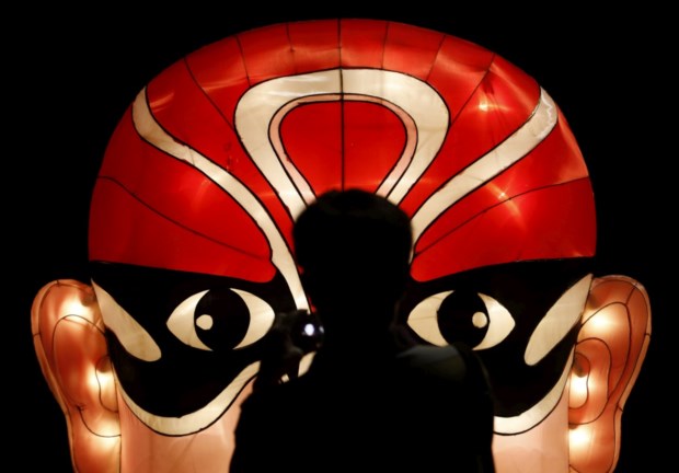 SINGAPURA, 15.09.2013. A fotografar uma réplica gigante e iluminada de uma máscara da ópera chinesa Edgar Su/Reuters