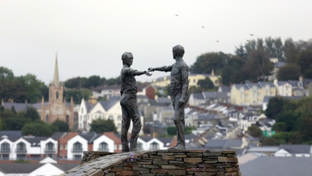 IRLANDA DO NORTE, 3.10.2013. Uma estátua de Maurice Harron a simbolizar a busca de união entre o que está dividido em Derry City (Londonderry), capital britânica da cultura em 2013 Cathal McNaughton/Reuters