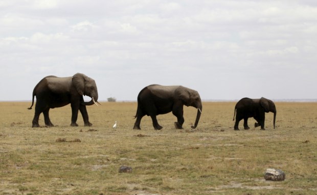 QUÉNIA, 9.10.2013. Uma família de elefantes durante uma contagem no parque nacional de Amboseli, perto de Nairobi Thomas Mukoya/Reuters