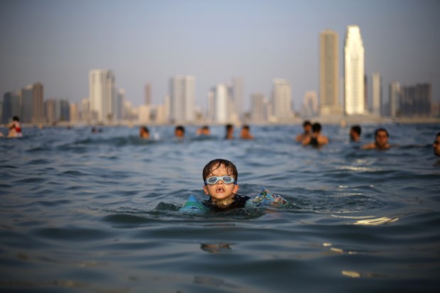 DUBAI, 25.10.2013. Um mergulho na praia de Mamzar Ahmed Jadallah/Reuters