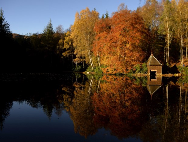 ESCÓCIA, 5.11.2013. O Outono reflectido no lago Dunmore, perto de Pitlochry Russell Cheyne/Reuters