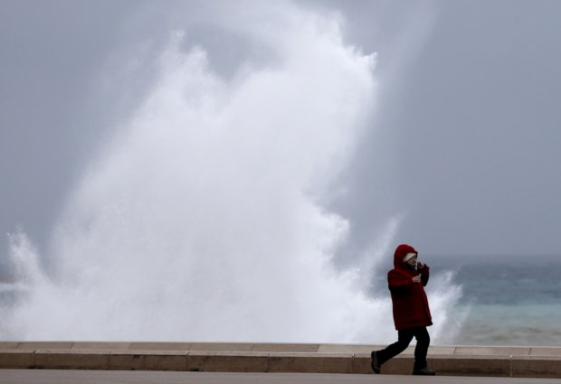 FRANÇA, 25.12.2013. A correr frente a uma onda gigante em Nice Valery Hache/AFP