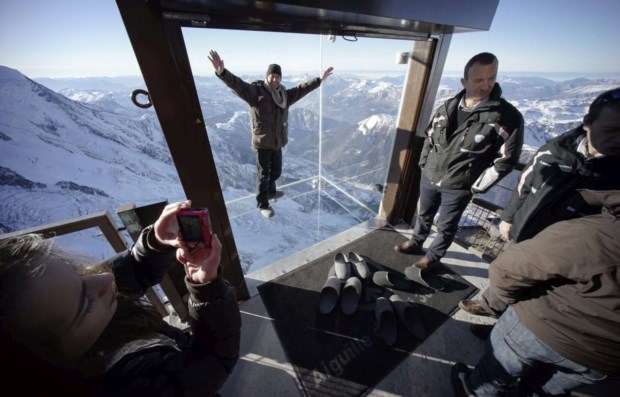 FRANÇA, 21.12.2013. Uma "caixa" de vidro estreou-se nos Alpes franceses, permitindo "um passo no vazio". Em Aiguille du Midi, sobre Chamonix Robert Pratta/Reuters