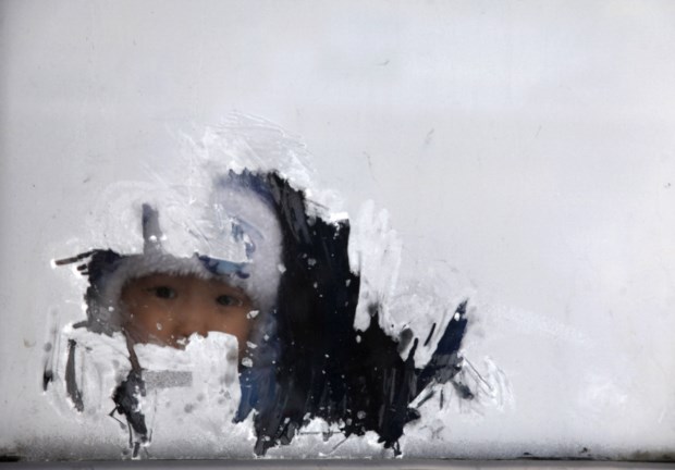 MONGÓLIA, 27.12.2013. Uma criança espreita pela janela de um autocarro em Ulan Bator. Temperatura: -31ºC B. Rentsendorj/Reuters