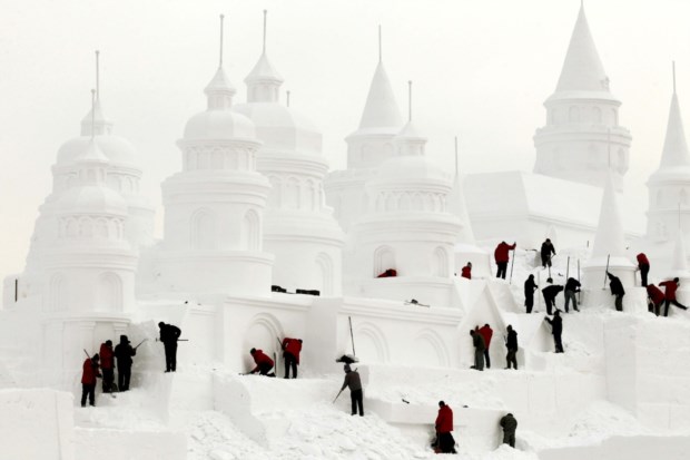CHINA, 30.12.2013. A erigir um castelo de gelo em Changchun Reuters