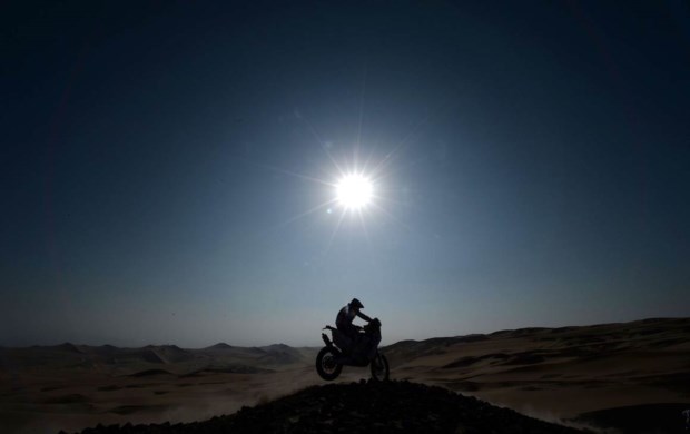 Um motard na etapa entre Pisco e Nazca, no Peru Franck Fife/AFP