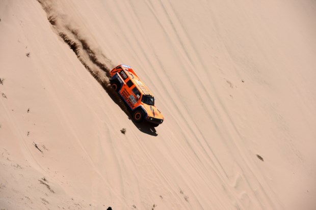 Um dos pilotos da Mini na etapa entre Nazca e Arequipa, no Peru Franck Fife/AFP