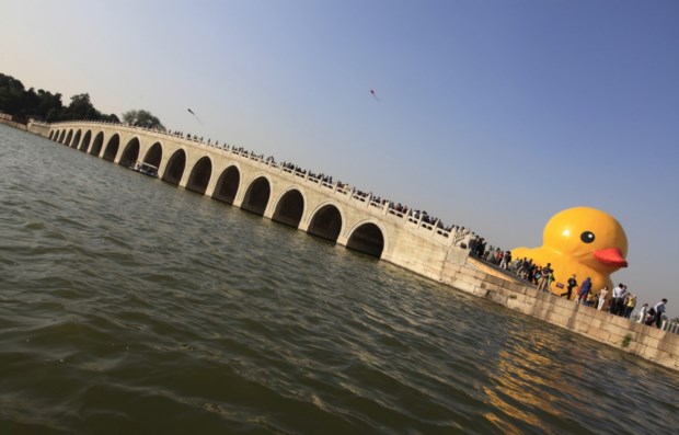 Hong Kong. Problemas técnicos com o pato levaram a que fosse esvaziado, apresentando-se assim Bobby Yip/Reuters
