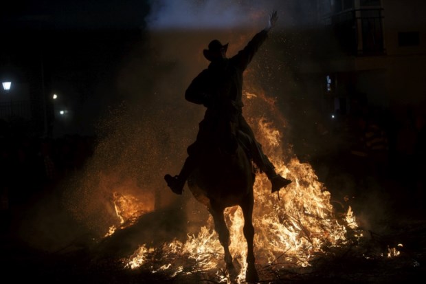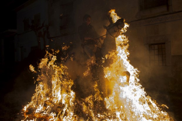 Las Luminarias é uma tradição anual espanhola que remonta à Idade Média. San Bartolomé de Pinares, Ávila, é um dos epicentros deste evento que chama muitos visitantes (e fotógrafos...) mas também arde em polémica. A cada 16 de Janeiro, a celebração inclui a "purificação" de cavalos, burros e cavaleiros. Uma "purificação" que passa por atravessar e saltar fogueiras o mais depressa possível, no dia que evoca Santo Antão (San Antonio Abad em espanhol), protector dos animais. Já as associações protectoras dos animais não acreditam na santidade desta tradição e pedem o seu fim, havendo quem defenda que para manter o costume, até como ele seria medievalmente, bastaria passar com os animais pelo fumo. As autoridades locais, de Castela e Leão, defendem o evento e informam que nenhum cavalo sofreu quaisquer queimaduras. Ficam as labaredas do documento fotográfico.