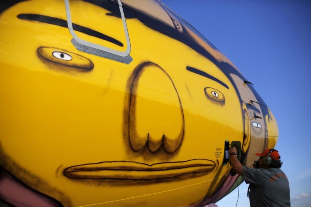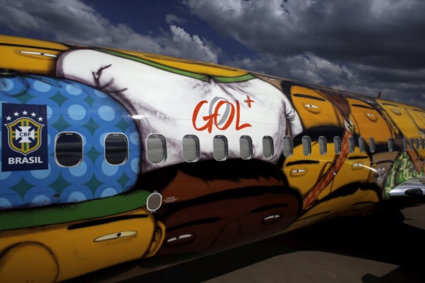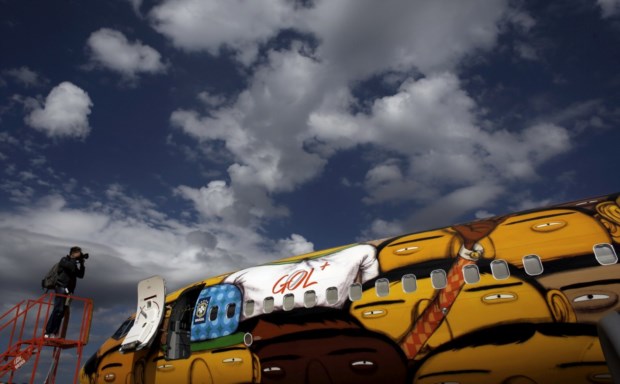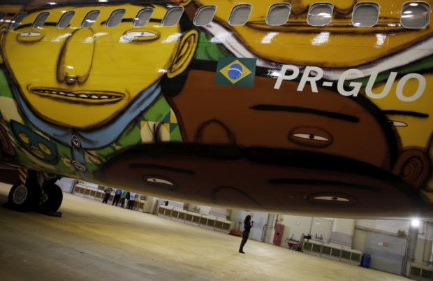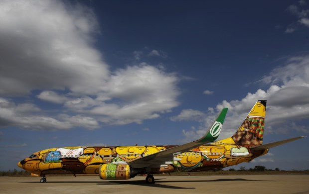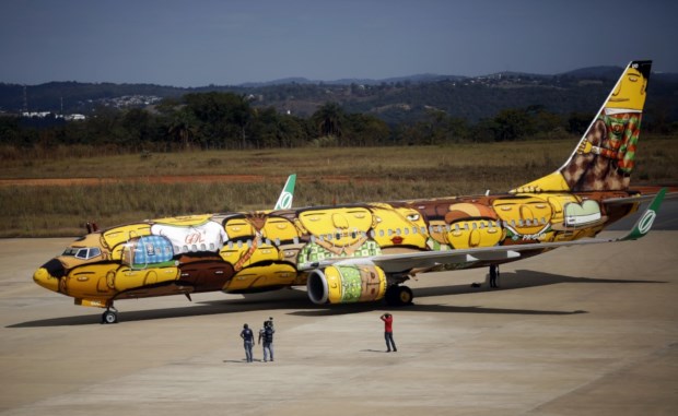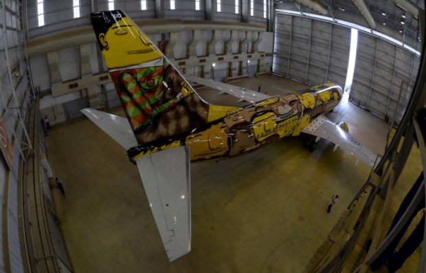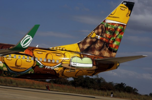 O avião que vai transportar a selecção brasileira durante o Mundial tornou-se uma obra de arte assinada pela célebre dupla de "graffiters" brasileiros Os Gémeos.