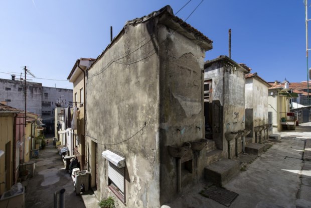 Na imagem, vêem-se lavatórios de casas de banho comunitarias Miguel Nogueira