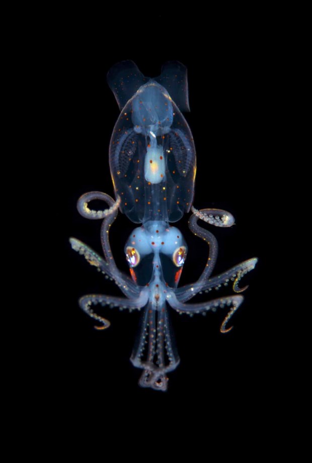 Finalista/Espécies Subaquáticas: uma pequena lula de apenas três centímetros numa imagem captada num mergulho noturno no Taiti Fabien Michenet/Wildlife Photographer of the Year 2014