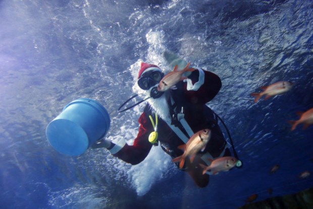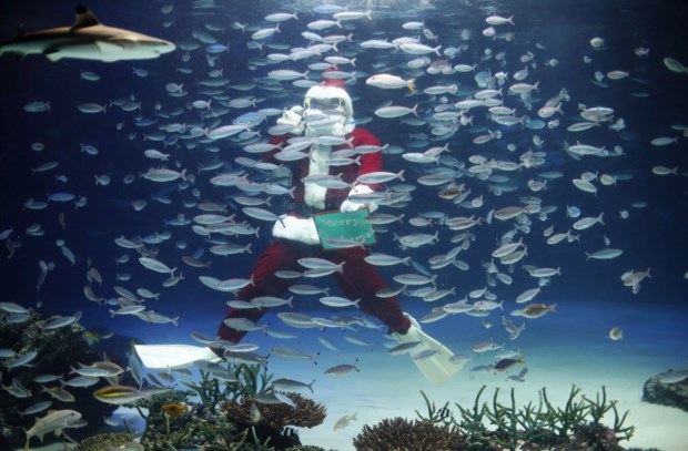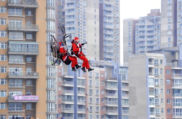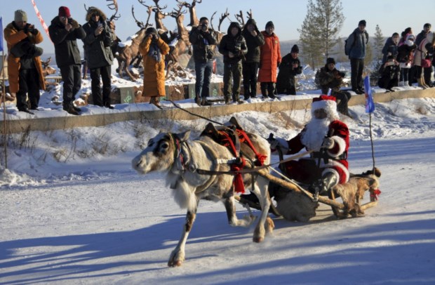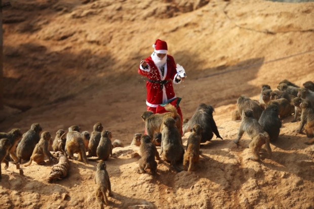 China. Um empregado de zoo veste-se de Pai Natal para alimentar os animais em Kunming Reuters