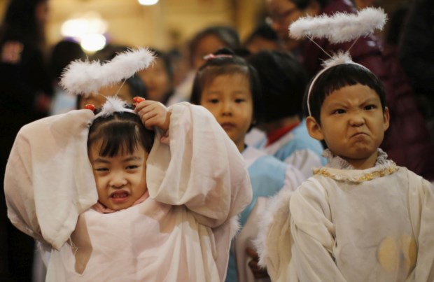China, dois "anjos" nma missa católica em Pequim Kim Kyung Hoon / Reuters