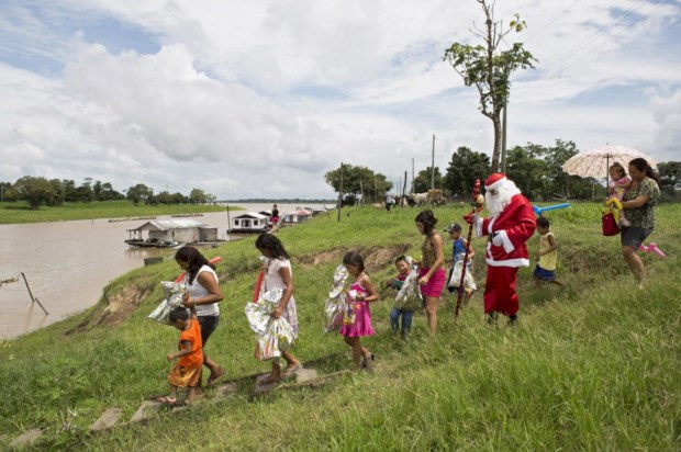Brasil. Um membro dos Amigos do Papai Noel, que distribui prendas por crianças desfavorecidas, aqui no estado do Amazonas Reuters