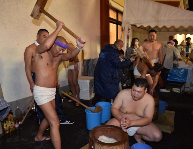 Japão, cerimónia tradicional da preparação do arroz para o novo ano AFP PHOTO/Yoshikazu TSUNO